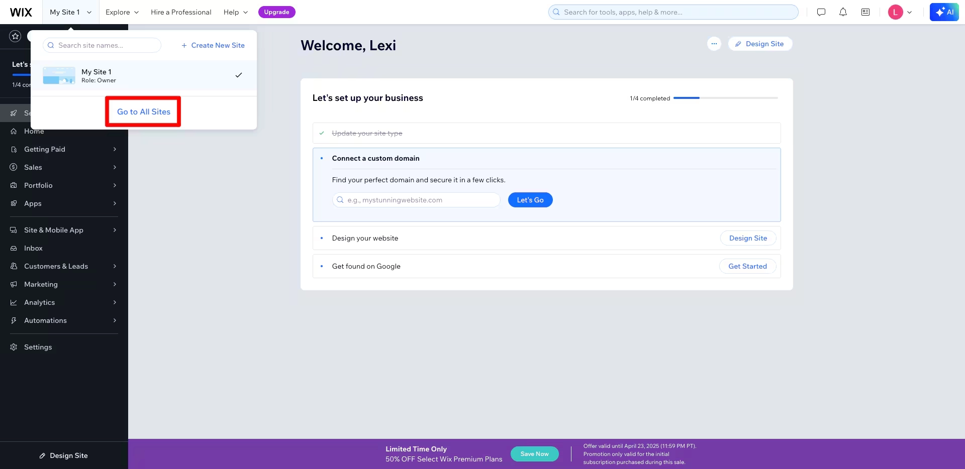 1. Log in to your WIX Account