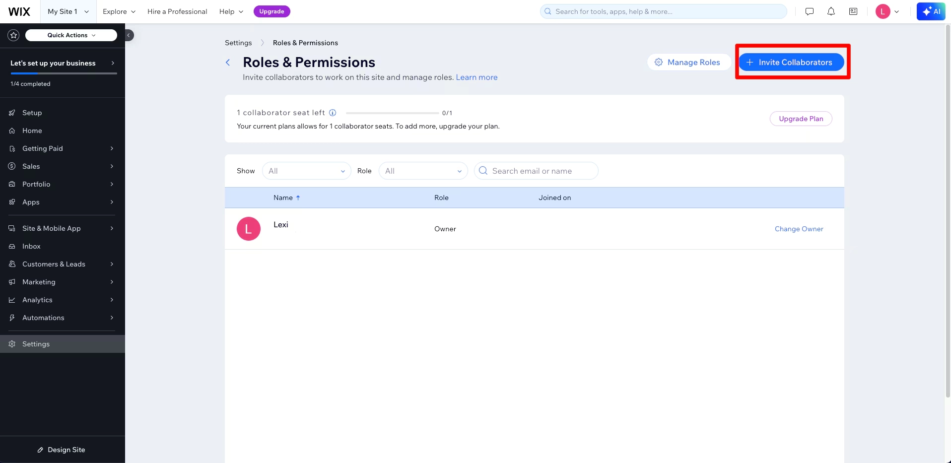 5. Under the Roles & Permissions, click the Invite Collaborators button: