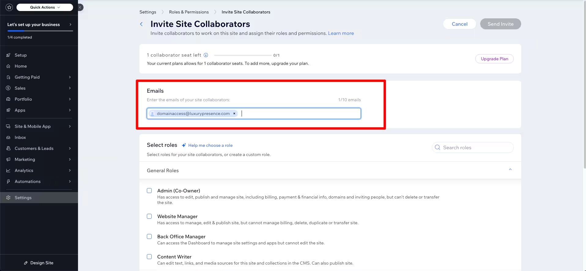 8. Click the Send Invite, and you’re done!