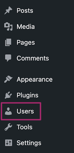 On the left-hand side, you will see a menu. In that menu, click on ‘Users’.
